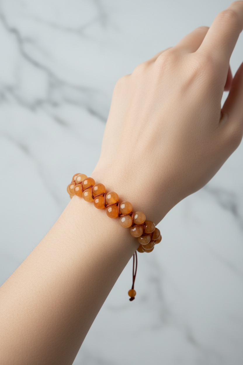 Canlı turuncu tonlarıyla öne çıkan Turuncu Aventurin 8mm Çift Sıra Makrome Doğal Taş Bileklik, enerjik ve modern tasarımıyla bileğinizde dikkat çekici bir şıklık sunar. 8mm çapındaki doğal aventurin taşları çift sıra halinde dizilmiş, el yapımı makrome örgü tekniğiyle hazırlanmıştır. Günlük kombinlerde enerjik bir detay katarken, özel anlarda da sofistike bir tamamlayıcı aksesuar olarak tercih edilebilir.