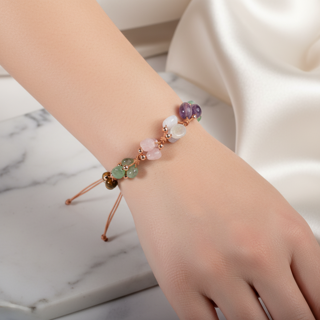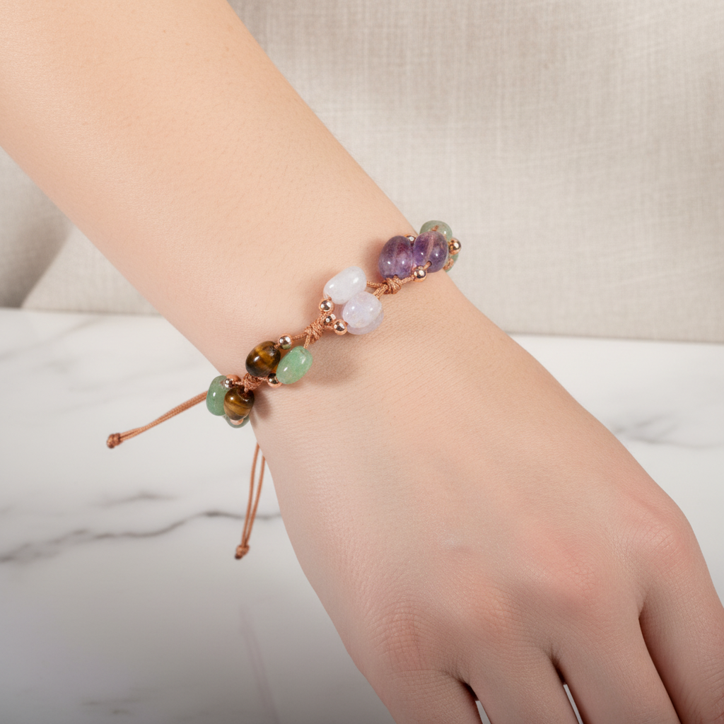 Yengeç Burcu Bileklik Ametist, Ay Taşı, Kalsedon, Kaplan Gözü, Krizopras, Pembe Kuvars, Yeşil Aventurin