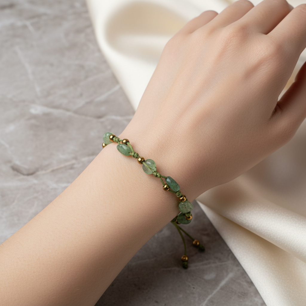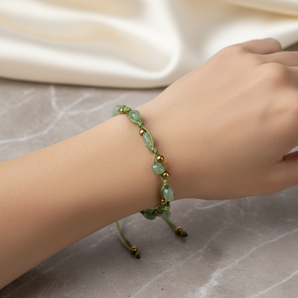 Yeşil Kiyanit Natürel Kesim Doğal Taş Makrome Bileklik – Unisex El İşçiliği