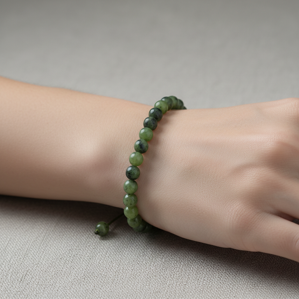 Yeşim 6 mm Merdiven Kapama Doğal Taş Bileklik – El İşçiliği