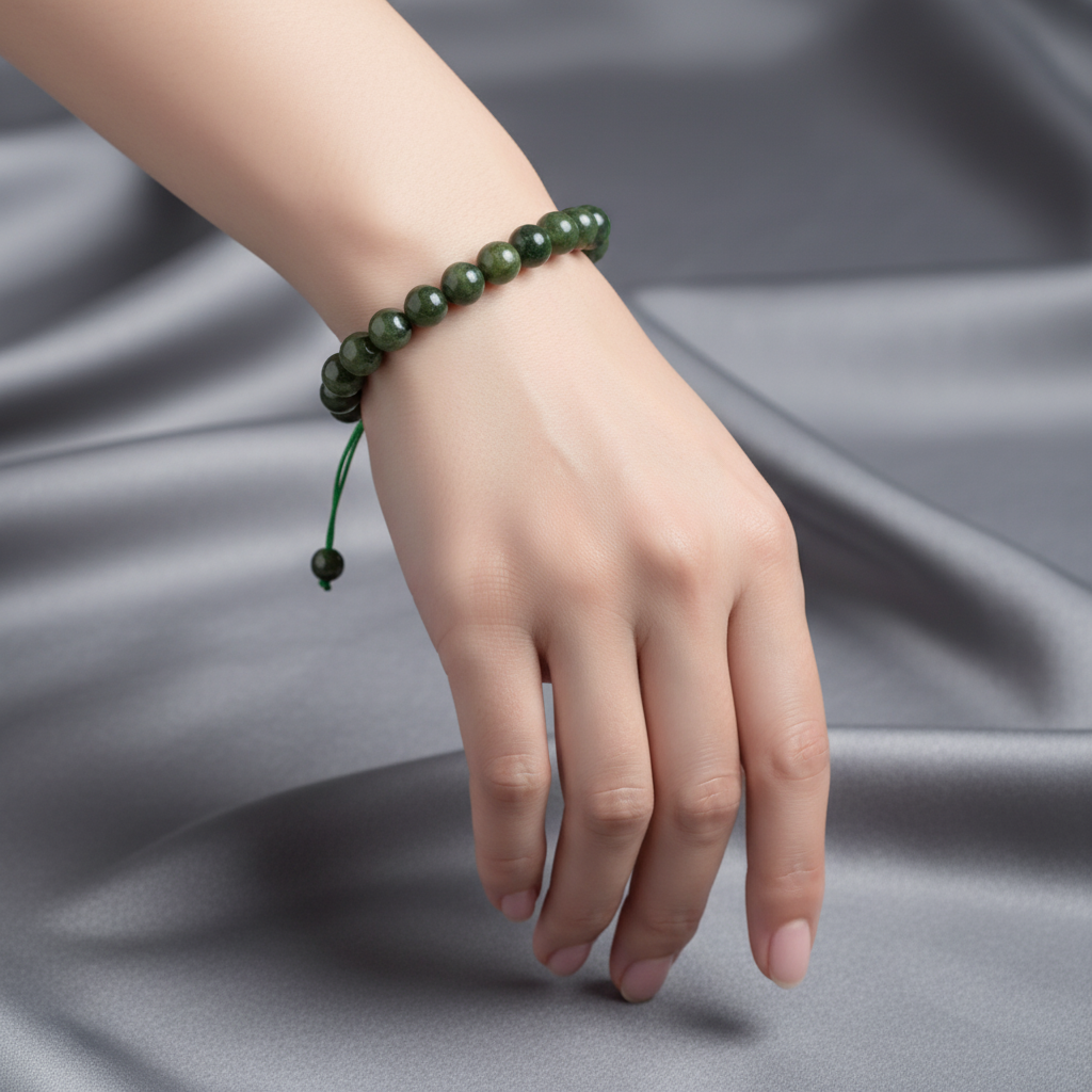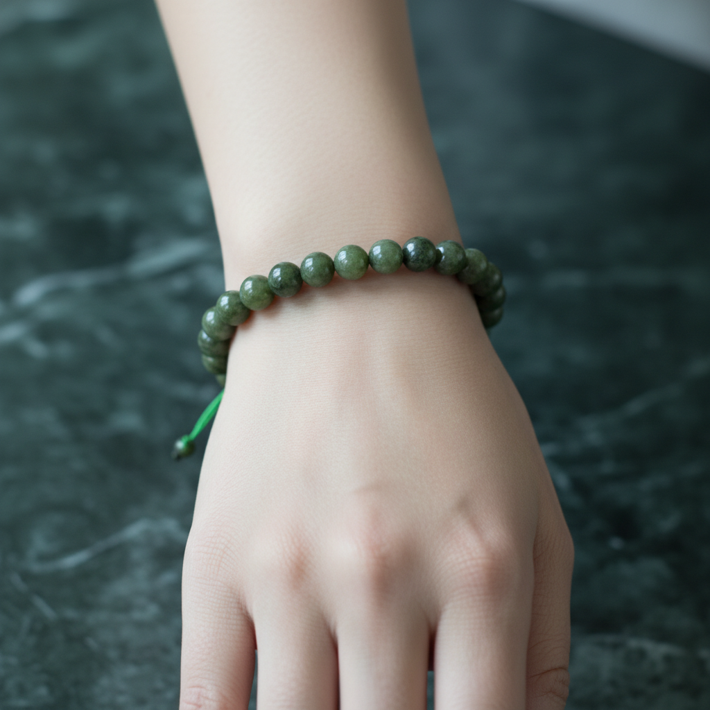 Yeşim 8 mm Merdiven Kapama Doğal Taş Bileklik – El İşçiliği